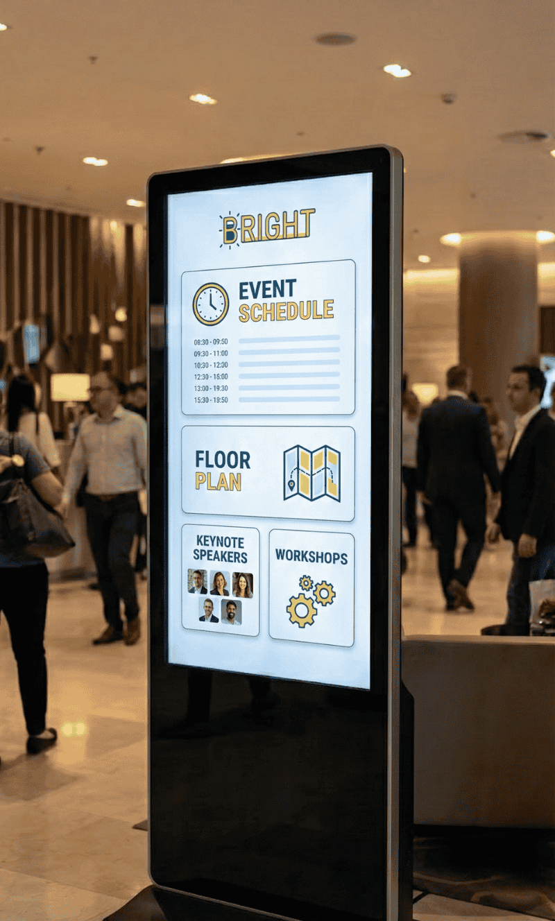 حوّل مساحتك مع حلول اللافتات الرقمية المتطورة من برايت. بدءًا من إدارة المحتوى الفعّالة وصولًا إلى شاشات العرض التفاعلية اللاسلكية وشاشات LED المذهلة، نوفر أنظمة اتصالات رقمية متكاملة مصممة مخصصة لتلبية احتياجات عملك.